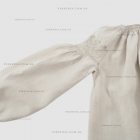 - Конструкція:силует прямий, стан суцільний пошитий з трьох полотнищ (сп.3), розріз переду центральний, горловина овальна, обшивка горловини, вставка плечова пришита по основі, пройма пряма, рукав прямий з прямокутним верхом, обшивка низу рукава, вставка під пахви, застібка - прорізні петлі